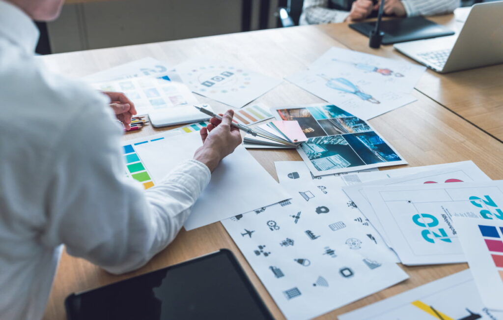 必要に応じて色校正や簡易校正を行い、事前に仕上がりイメージをご確認いただけます。ロゴ制作や細かな色調整なども含め、デザインから印刷まで一貫してサポートします。